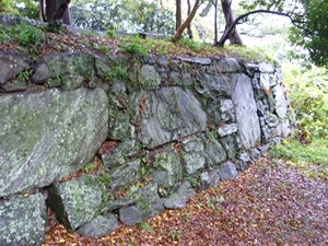 5分ほど小道が続いて失敗したかな、と思い始めた所で石垣どーん!