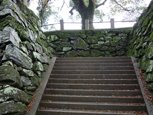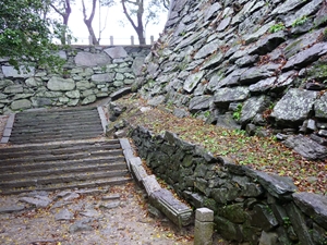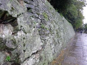 石垣の写真を数枚撮るが、もう電灯がつく時間になっていたので諦めた。