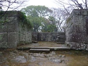 取って付けたような階段を不審に思ったが、手前の門の土台になる石垣の高さが左右同じ。
