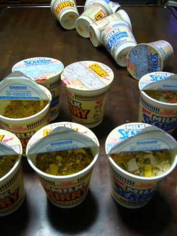 雨の中を帰る途中の西友でカップ麺を物色すると、Newの文字も鮮やかなカップヌードルのミルクカレー・ミルクシーフードが98円だった。