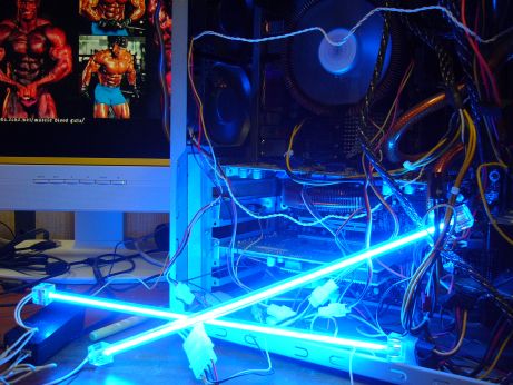 ネオン管丸見えは、普通にPC使ってるときに目がチカチカして辛いので、手前の一本をPC後部に移し間接照明にしました。orz