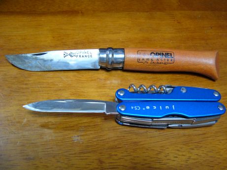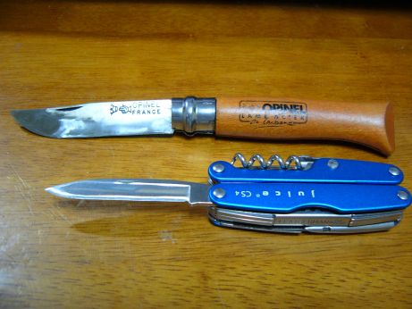 ピザやハムなどを切って、ロクにぬぐいもせず放置していたオピネル#8君と、レザーマン・ジュースSC4君。