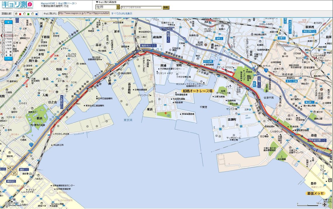 いつまでも続く渋滞がいやになり、船橋駅への交差点で反対の陸側の車線の方に渡る。