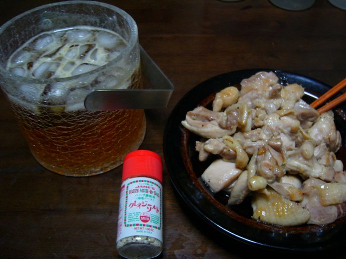 これから売り切れてたコカコーラの代わりに、ジンジャエールを使ったラムエール?wを、鳥モモのクレイジーソルト焼きでやっつけるぞ!