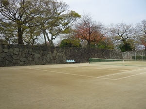 城の石垣をテニスコートの壁に使うなんて!