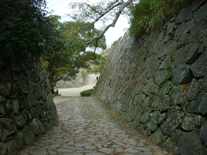天守への階段はマヤ文明のような石垣を抜ける。