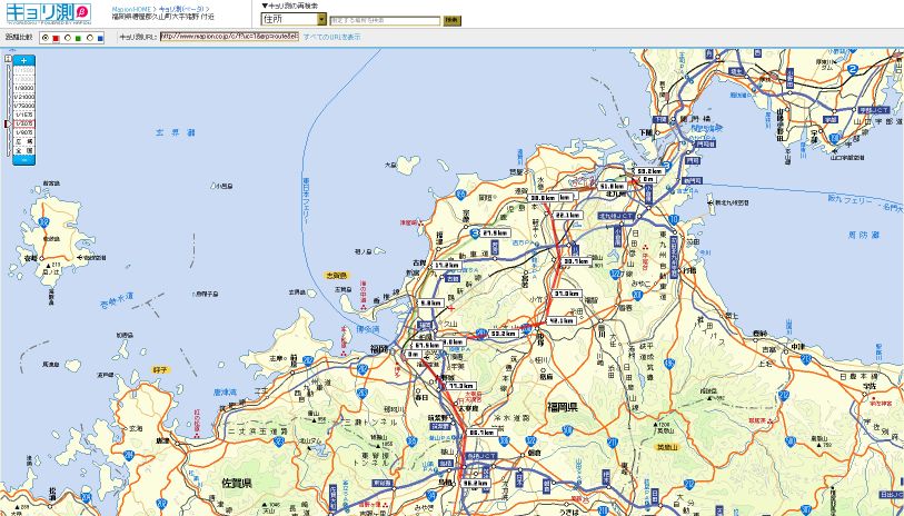 距離が測れるから、夏の旅のルート検索をしてたんだが、画像が出来るから冬の旅のルートを残しておこうと思ったんだ。