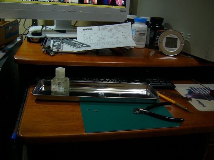ではさくっとパーツを付けていこう、PCデスクで作っているので、作業スペースが狭い!