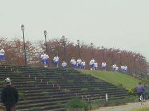 大きく一周しようと河川敷を歩いていると、チャリに先導された少年が走っている、親子鷹で特訓かな?と見ていると、後続を大きく引き離したマラソン大会のトップランナーらしい。