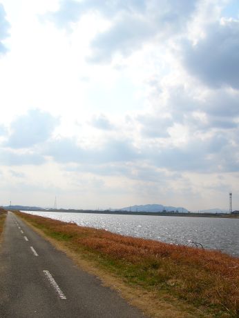 き~んの~なみ~き~し~べに~~♪と、ARIAのエンディングテーマをニヤニヤ聴きながら、キラキラに光る遠賀川をパチリ、のどかでいいのう。