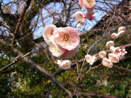 10:11 川沿いを歩いていると強烈な匂いがしてくる、見渡すと土手の下の民家の庭に梅が満開になってた。