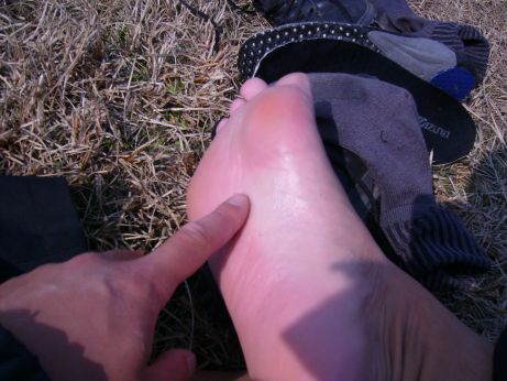 メシ食って一息入れ、足の裏の状態を見る。