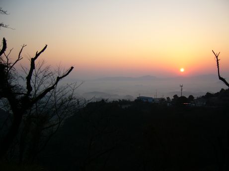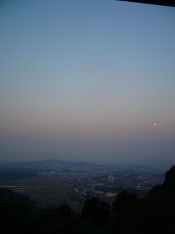 足元に広がる直方の町に、遠賀川対岸の山並から朝日が射してきてきれいだ。
