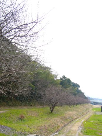 しかしその先の土手の上の道には歩道が無い、我慢して1kmほど歩いていたが、川にかかる沈下橋を発見し休憩ついでに地図を開くと、飯塚直方自転車道なんてのがある、しかも次に曲がる予定の201号が終点。