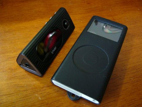 左がT-60(ブラック)、右がipod・nano(黒いカバー付き2GB)、思った以上に単4仕様は小さかった!